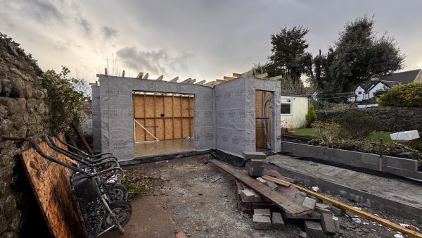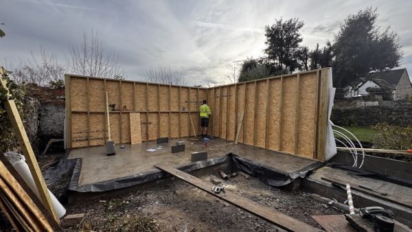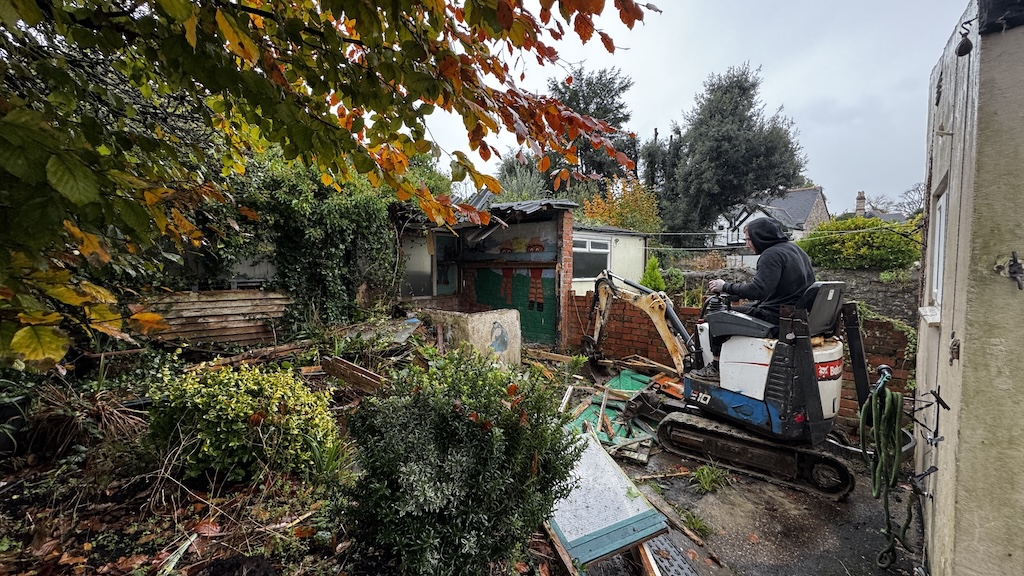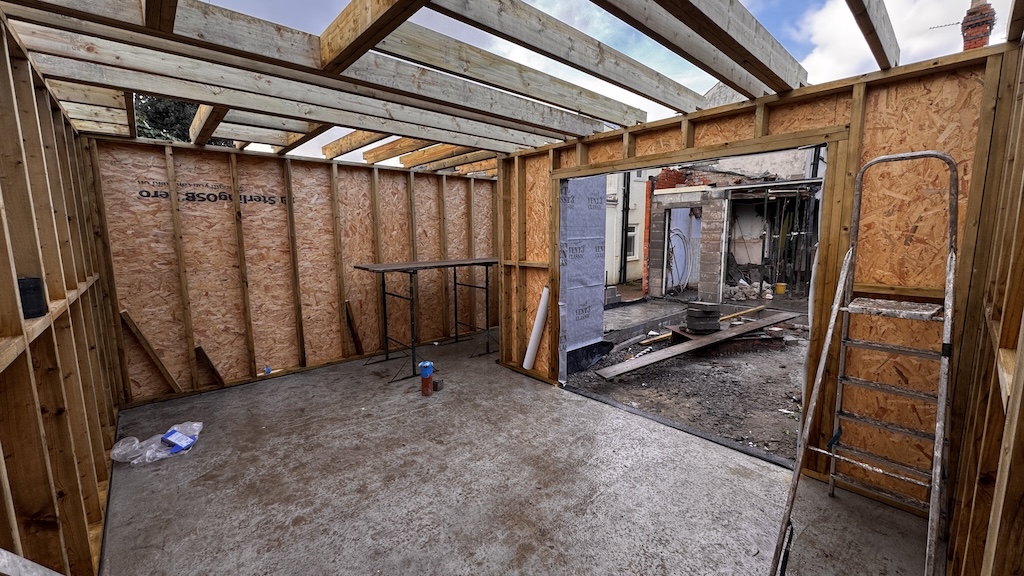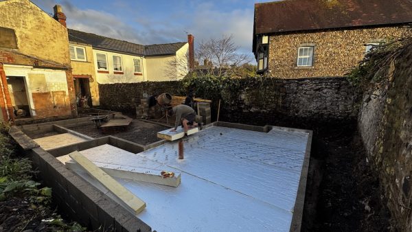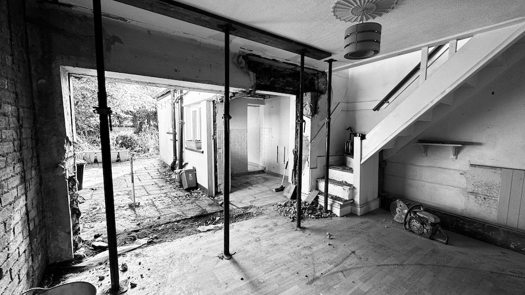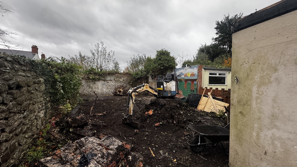 The initial challenge was to prepare the ground. A big part of this was taking down a large, dilapidated outhouse and rebuild it as a third bedroom with bathroom. We also had to prepare for a kitchen extension. This initial groundworks phase left us taking out 130 tonnes of soil, building materials and garden waste. We then poured 9 cube of concrete foundations before preparing for drainage, waste and the floor slabs. We have completed this phase.
